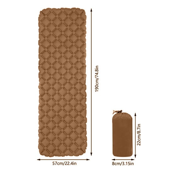تضخيم سهل: ما يحتاج أكثر من 10-15 نفس وتكون جاهزة، مقاسها 74*23 بوصة، وسمكها حوالي 2 بوصة، تضمن لك نوم مريح. بتستمتع بتجربة تخييم ما لها مثيل.