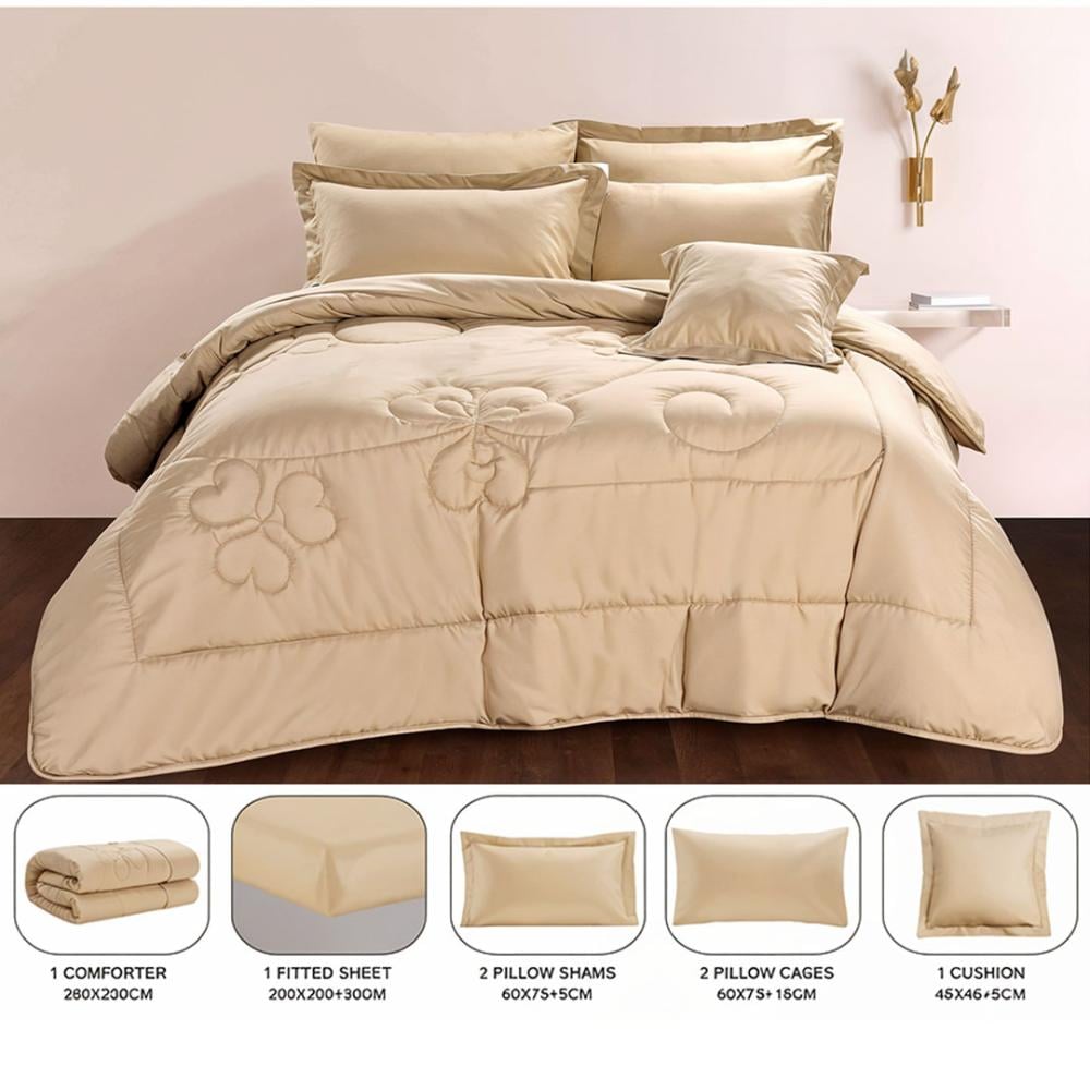 - سهولة العناية: الشرشف الخفيف وتلبيسات المخدات متناسقة تمامًا وتضيف لمسة نهائية رائعة.