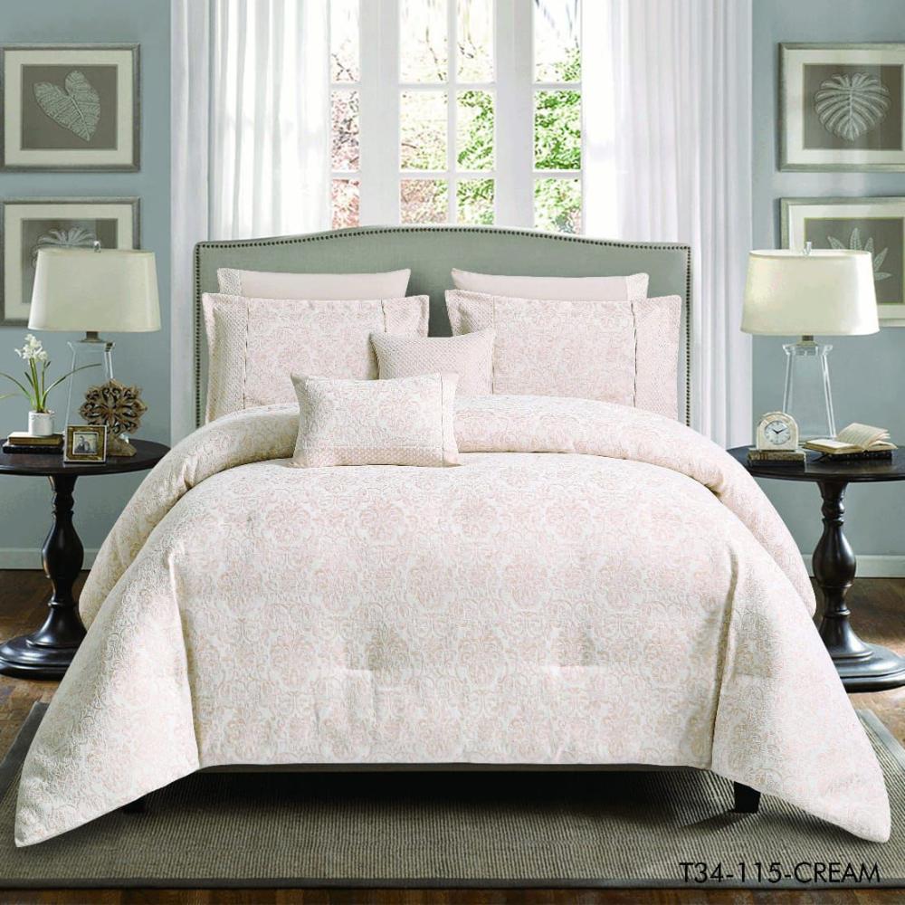 - التصميم الأنيق: يتميز طقم المفرش بتصميمه الجذاب والأنيق، مع استخدام ألوان هادئة ومناسبة لغرف النوم.
