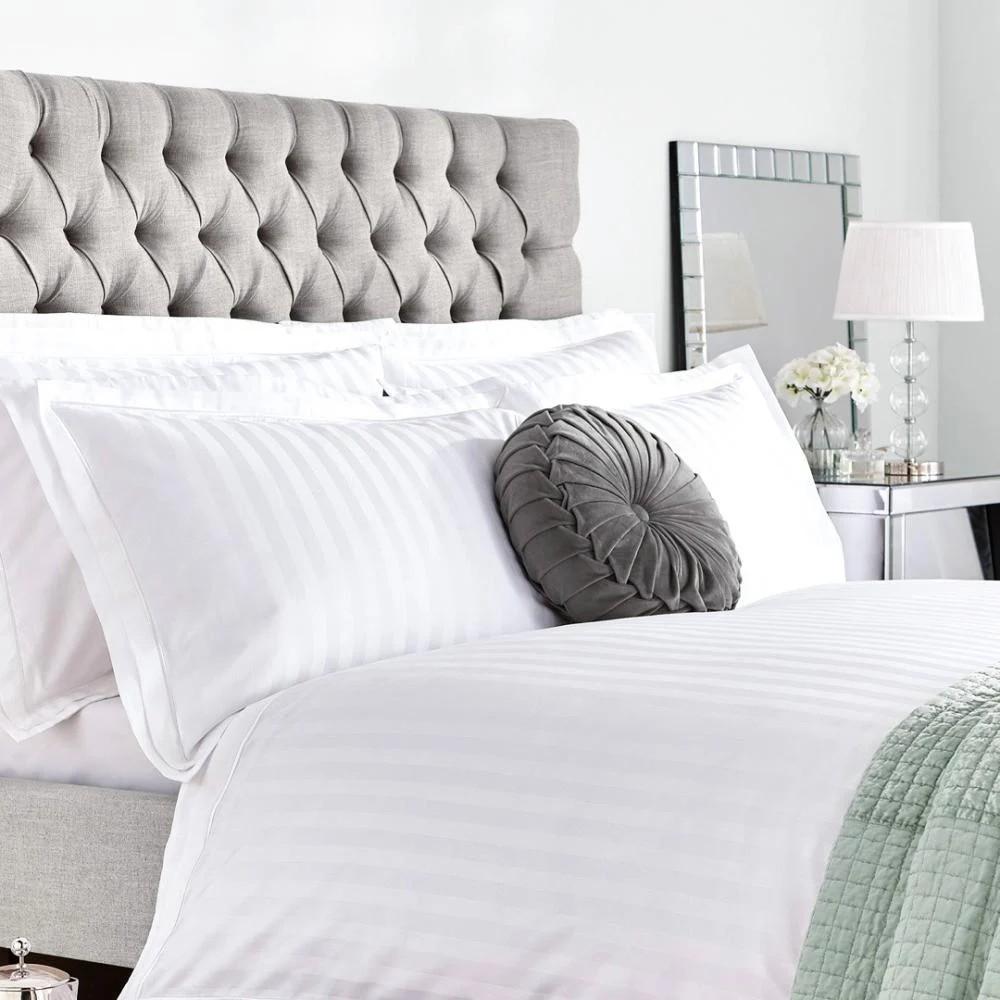 استمتع بالأناقة الكلاسيكية مع مفرش فندقي 5 قطع مقلم لون أبيض من متجر سليب لاند. خامة فاخرة وتصميم هادئ يناسب كل الأذواق. مثالي للاستخدام اليومي.