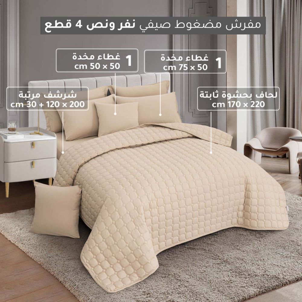 📌 وصف المنتج - مفرش مضغوط صيفي نفر ونص لون بيجاجعل غرفة نومك أكثر دفئًا ورُقيًا مع طقم المفرش المضغوط الصيفي باللون البيج الأنيق. مصنوع من ألياف دقيقة بجودة عالية، تمنحك ملمسًا ناعمًا وتهوية مثالية، مما يجعله خيارًا مثاليًا لفصل الصيف. النقوش المحفورة بتصميم هندسي عصري تضيف لمسة راقية إلى سريرك، مع خامة خفيفة توفر لك الراحة طوال الليل.