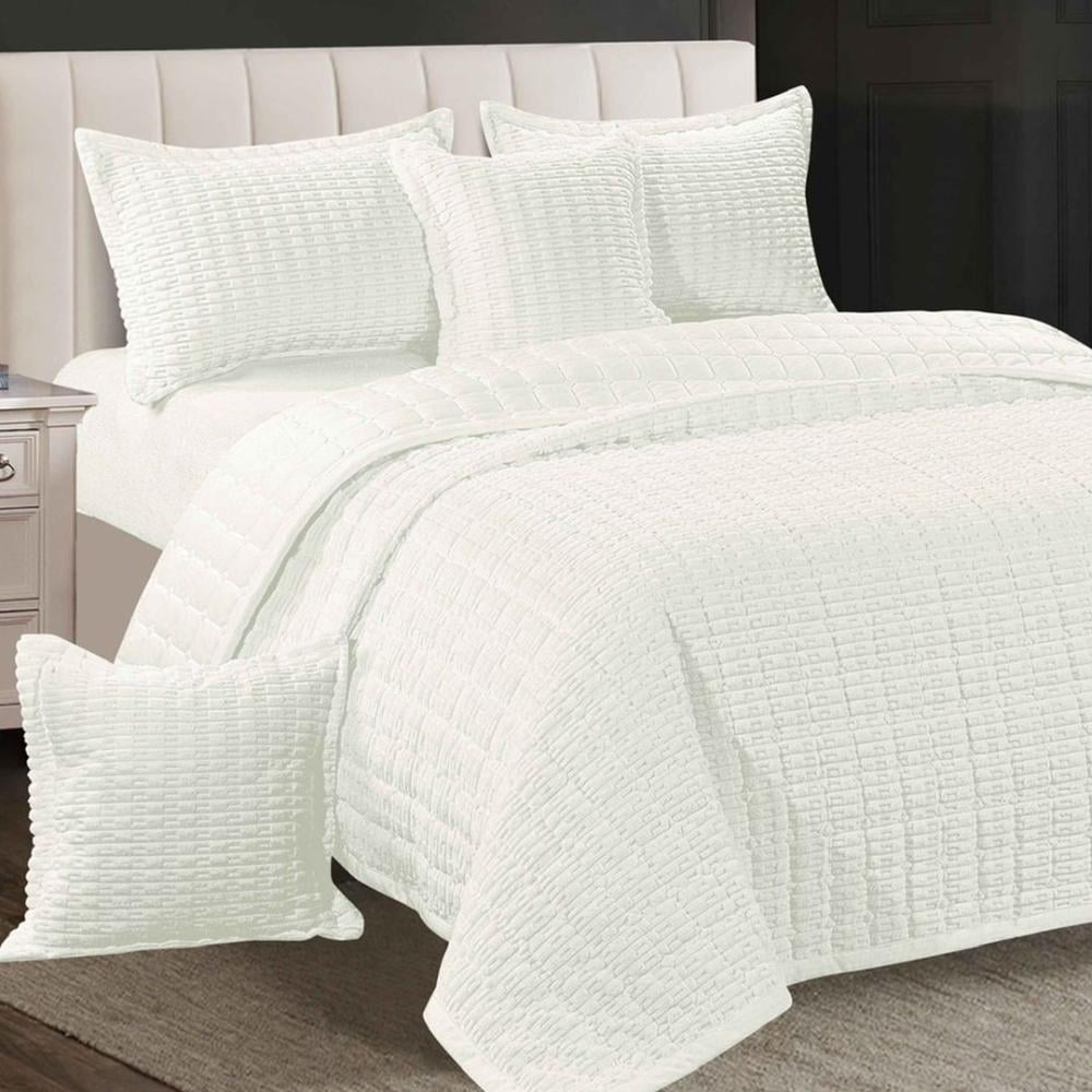 مفرش مضغوط من المخمل المحفور - اللون الكريمي الراقي مع هدية خاصة