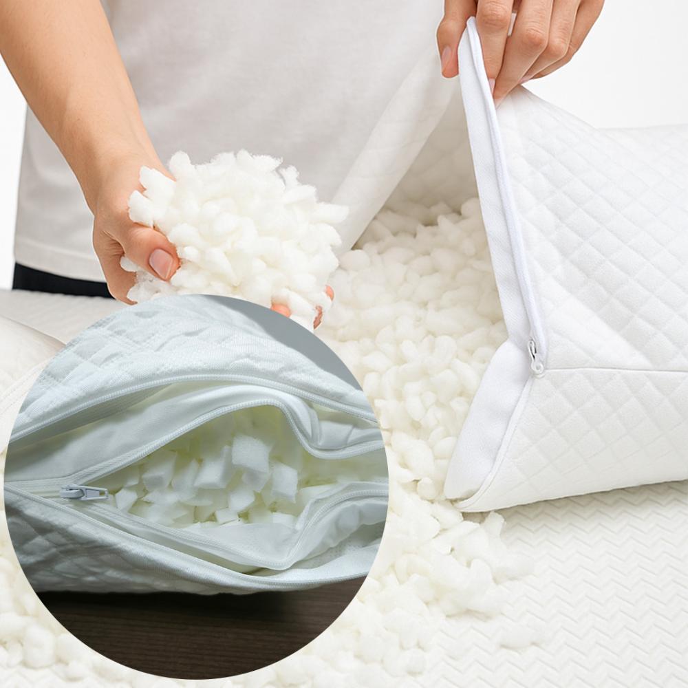 هي وسادة طبية تحتوي على حشوة ميموري فوم مبشور يمكنك تعديل كميتها حسب رغبتك. تمنحك حرية التحكم في ارتفاع الوسادة ودرجة الصلابة، لتناسب جميع أوضاع النوم وتوفر دعماً دقيقاً للرقبة والكتف.
