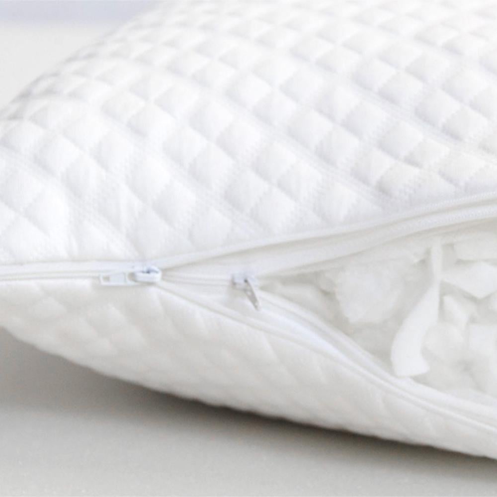 تأتي الوسادة مع حشوة إضافية يمكنك إضافتها أو إزالتها بسهولة من خلال السحاب الجانبي للتحكم في مستوى الدعم. الغطاء الخارجي مصنوع من قماش ناعم ومتين (40٪ تينسل + 60٪ بوليستر)، قابل للإزالة والغسل، ومضاد للحساسية.