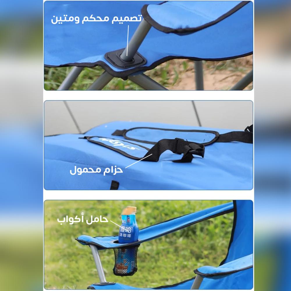 - قابلية الطي: يمكن طي الكرسي بسهولة وتخزينه في حقيبة الحمل المرفقة، مما يجعله مثاليًا للسفر والتخييم.