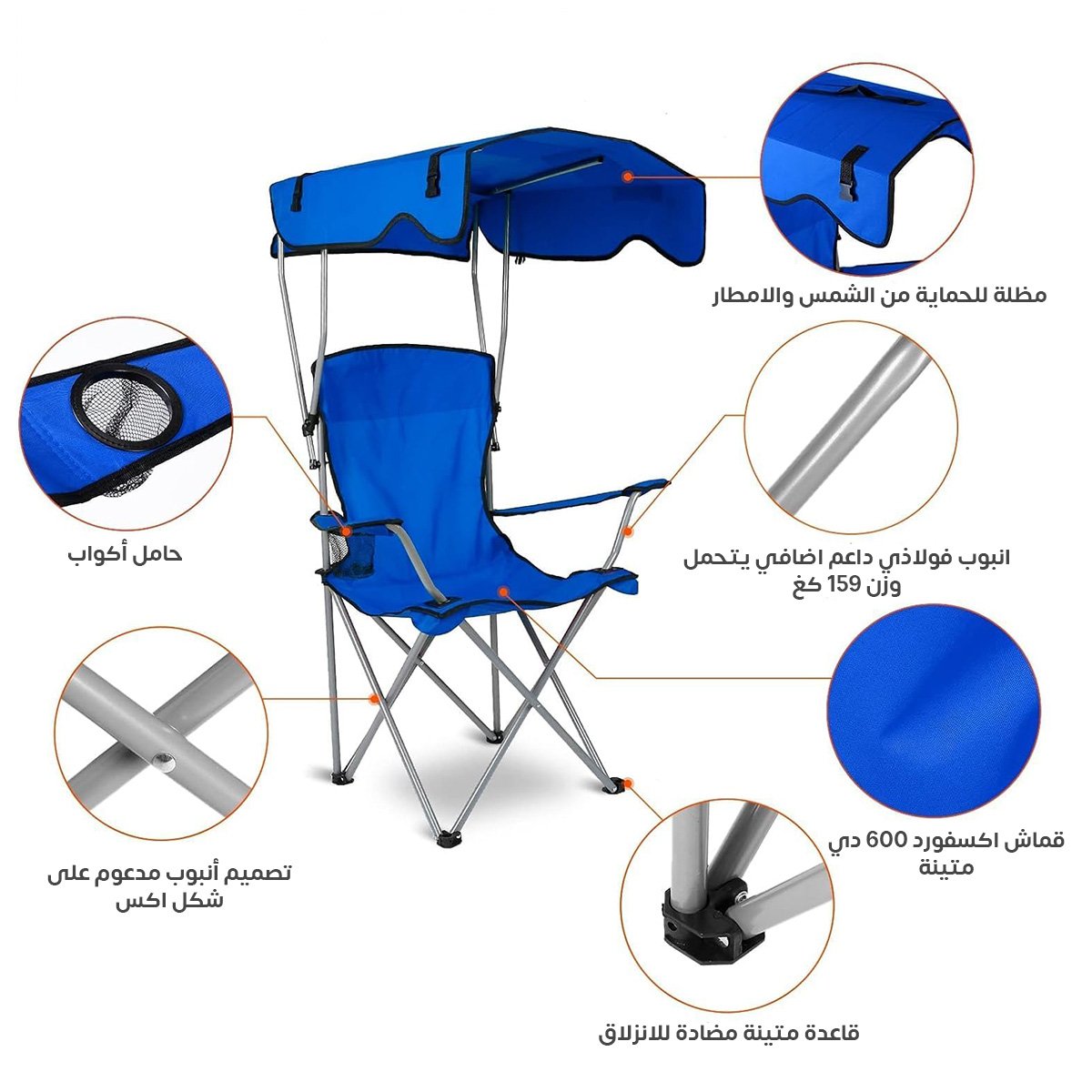 كرسي تخييم قابل للطي مع مظلة قابلة للتعديل