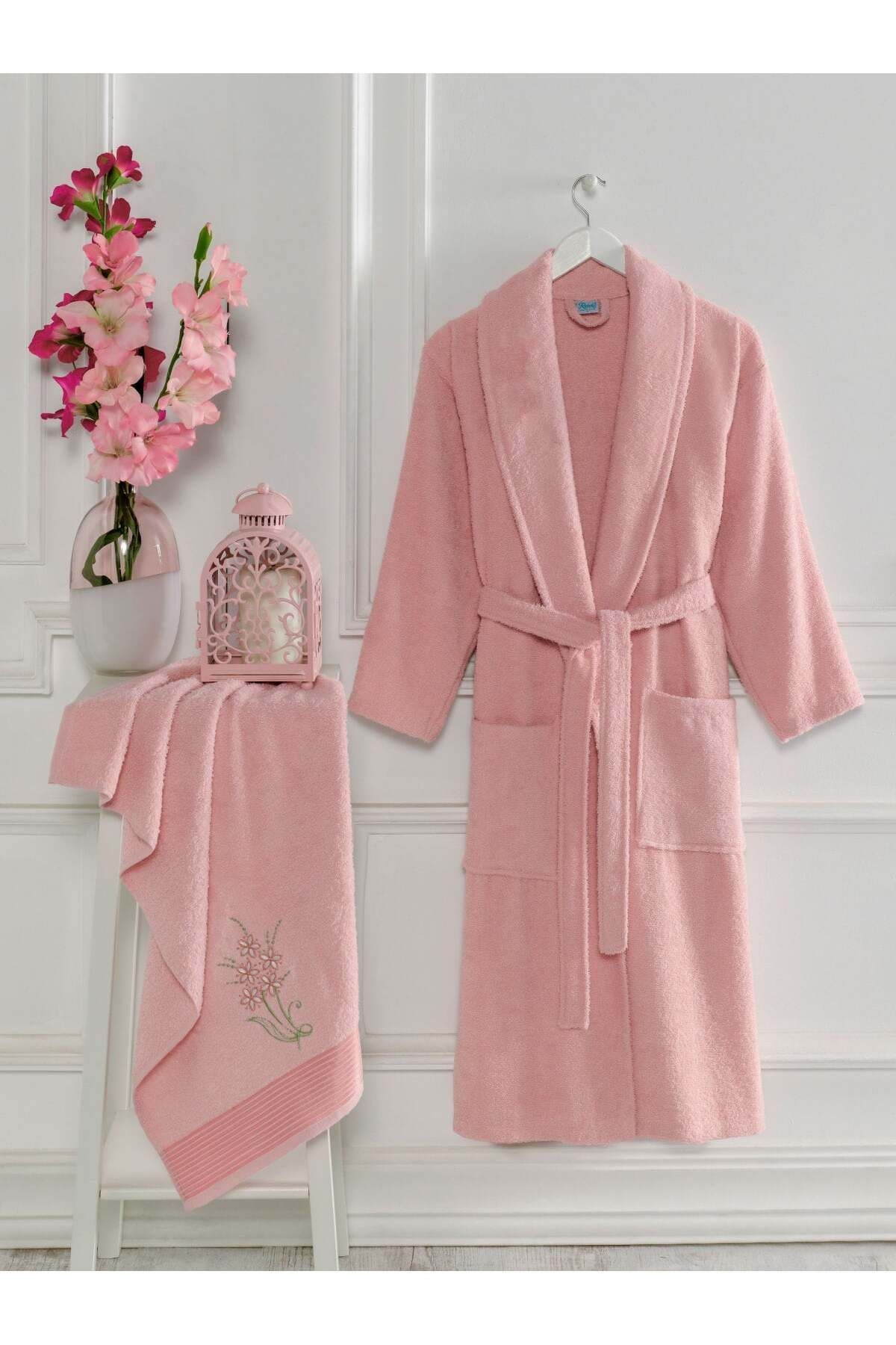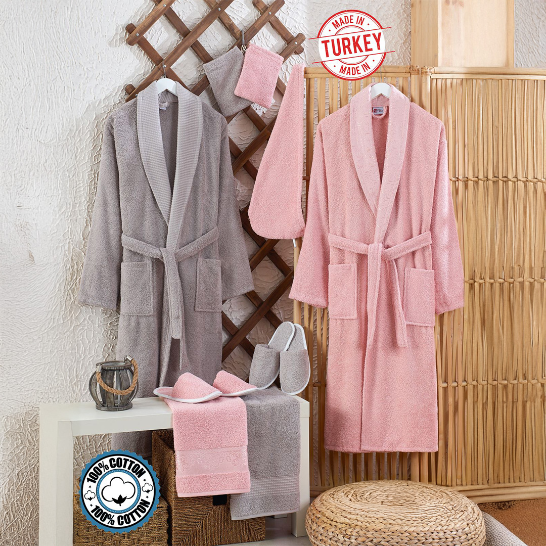 - 🌸 طقم روب حمام تركي قطن 100% – لون وردي