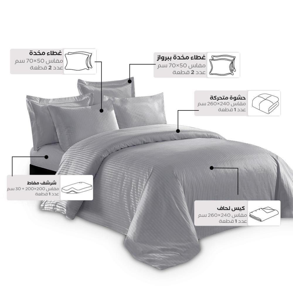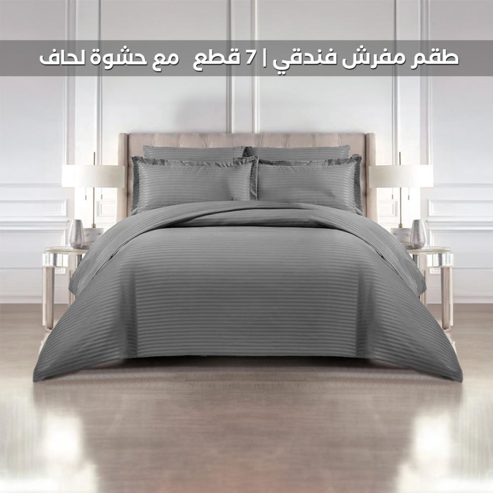استمتع بتجربة نوم فندقية مع مفرش فندقي رمادي الفاخر ذو التصميم العصري الأنيق، حيث يجمع بين الجودة العالية والمظهر الرائع ليوفر لك مزيجاً من الراحة والجمال في غرفة نومك.
