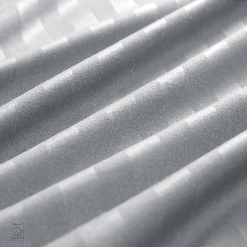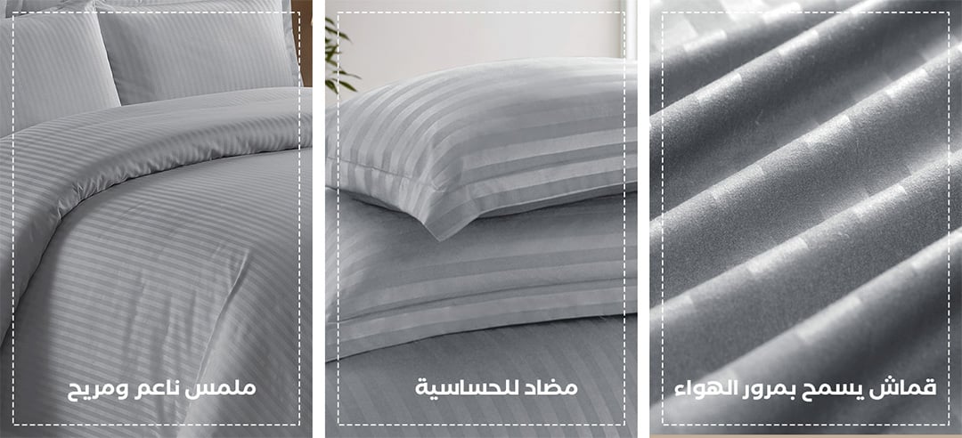 - تصميم مقلم يعكس الفخامة: الخطوط الساتانية المنسوجة داخل القماش تمنح المفرش مظهرًا فندقيًا أنيقًا يعكس الضوء بشكل ناعم ويبرز جمال السرير.