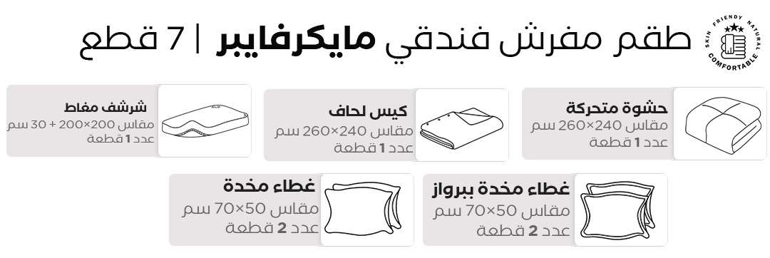 - ملمس ناعم وتجربة نوم مريحة: الألياف الدقيقة تمنح ملمسًا لطيفًا على البشرة مع توازن مثالي بين النعومة والمتانة.