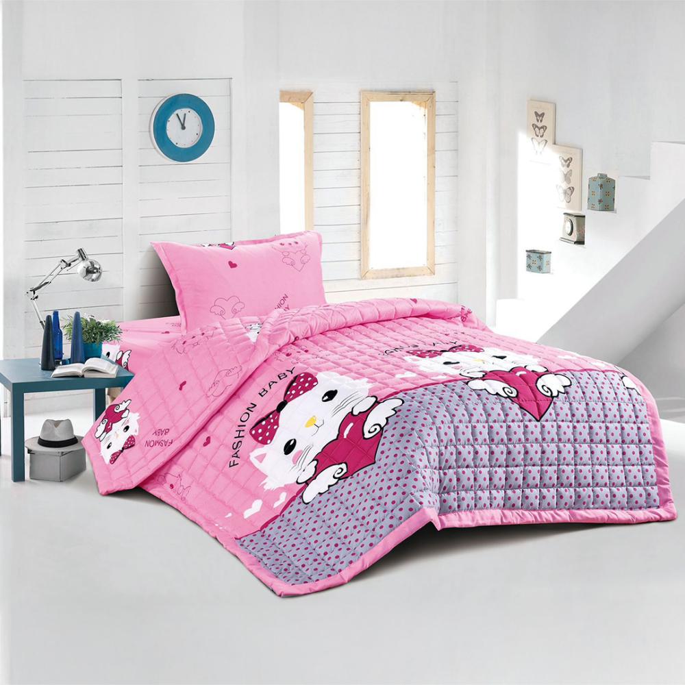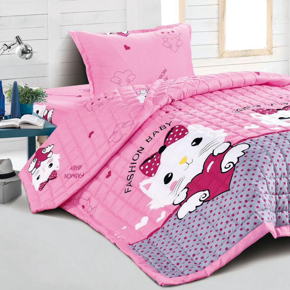 أضيفي لمسة أنثوية حالمة لغرفة طفلتك مع مفرش أطفال بناتي وردي برسومات قطة كرتونية وقلوب مرحة. تصميم مبهج يجمع بين الألوان الزاهية والراحة الفائقة، ليمنح صغيرتك أجواء مليئة بالدفء والسعادة أثناء النوم.