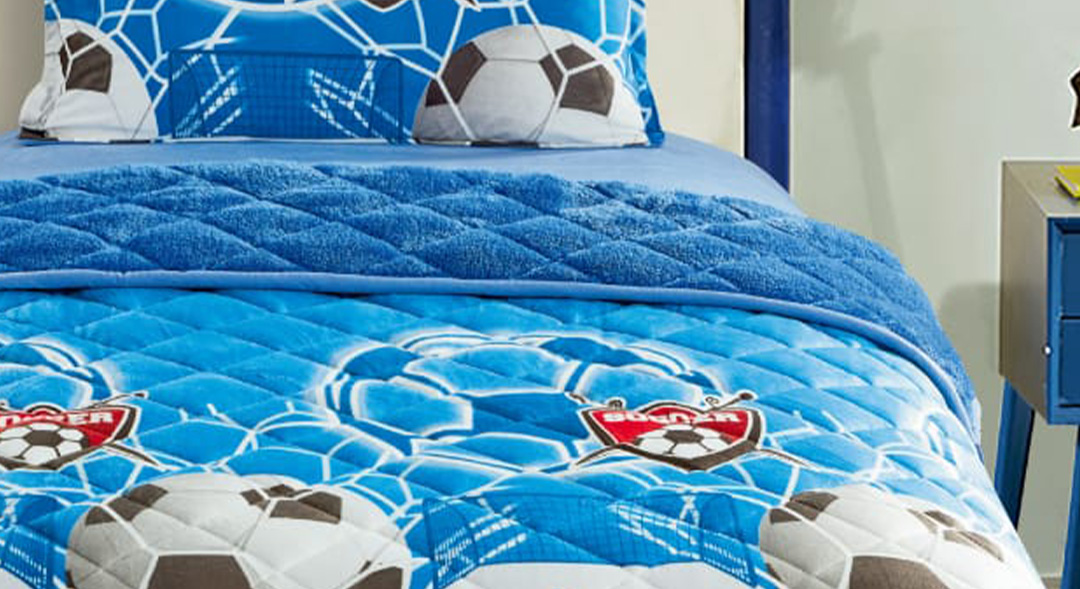 أضف لمسة حماسية رياضية لغرفة طفلك مع مفرش أطفال وجهين (فرو + مخمل) مضغوط باللون الأزرق بتصميم كرة القدم. خامة عالية الجودة ناعمة الملمس تمنح الراحة والدفء، وتضفي على الغرفة أجواء مليئة بالحيوية.