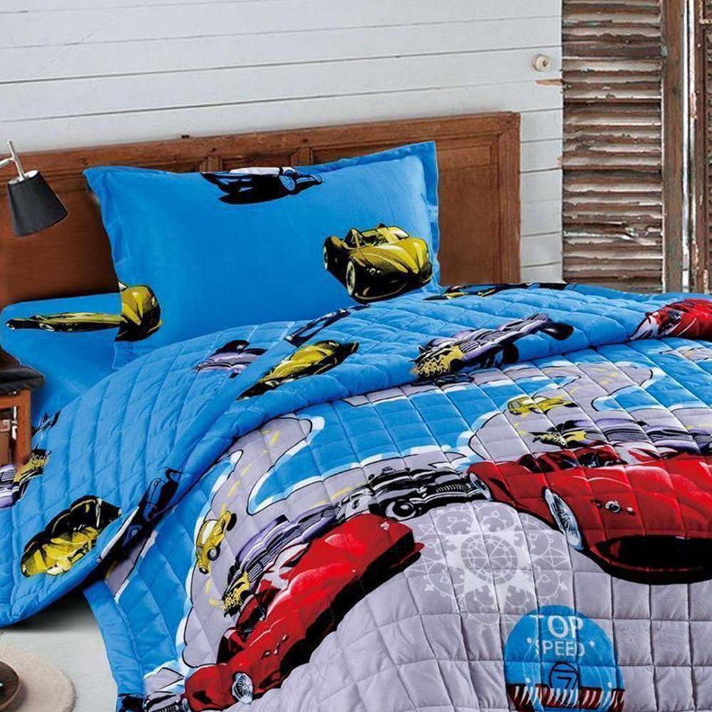 أضف جو الحماس والمتعة إلى غرفة طفلك مع مفرش أطفال مخمل مضغوط بتصميم سيارات السباق الكرتونية. يأتي باللون الأزرق المبهج مع رسومات سيارات ملوّنة تضفي لمسة مليئة بالطاقة والمرح. خامة المخمل عالية الجودة تمنح طفلك الدفء والراحة في كل ليلة نوم.