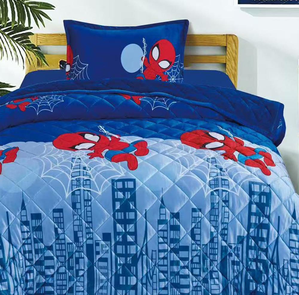 أضف لمسة بطولية وأجواء حماسية لغرفة طفلك مع مفرش الأطفال الشتوي KTCM بتصميم سبايدرمان الأزرق الليلي. يجمع بين الفرو الناعم من جهة والمخمل الفاخر من الجهة الأخرى ليمنح نومًا دافئًا ومريحًا طوال ليالي الشتاء، مع رسومات مذهلة تضفي لمسة من المغامرة والمرح.