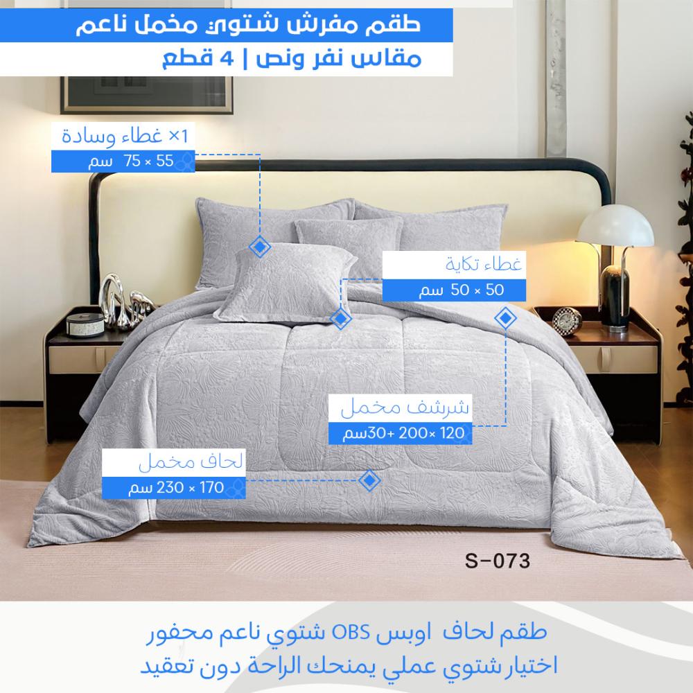 جدد دفء غرفتك مع طقم اللحاف الشتوي (نفر ونصف) المصمم بخامة المخمل ناعم منقوش. يجمع هذا الطقم بين الكفاءة العالية في حفظ الحرارة والملمس الوبري الناعم، مما يجعله الخيار الأمثل للأجواء الباردة. بفضل مقاسه العملي، هو مثالي لغرف الشباب أو الأسرّة المتوسطة، ليمنحك تجربة نوم مريحة ودافئة بتصميم عصري يناسب الاستخدام اليومي