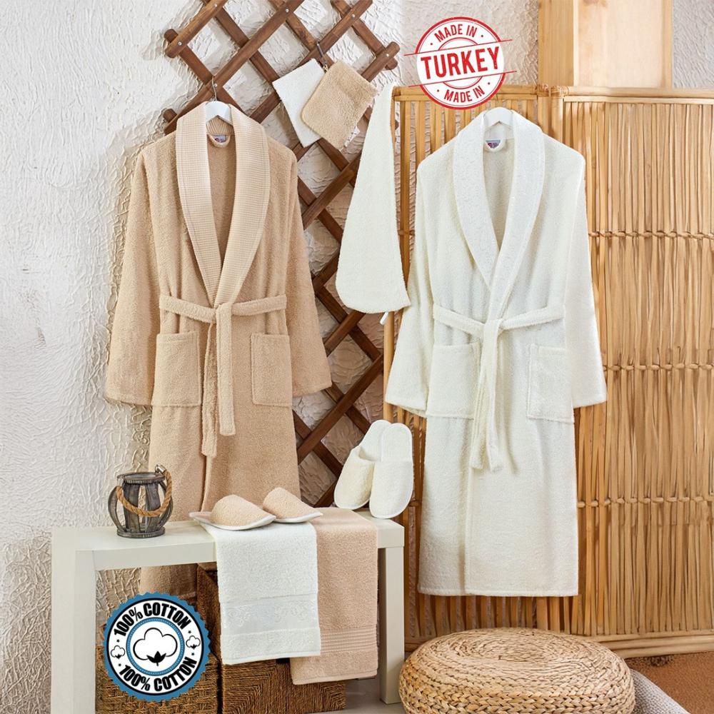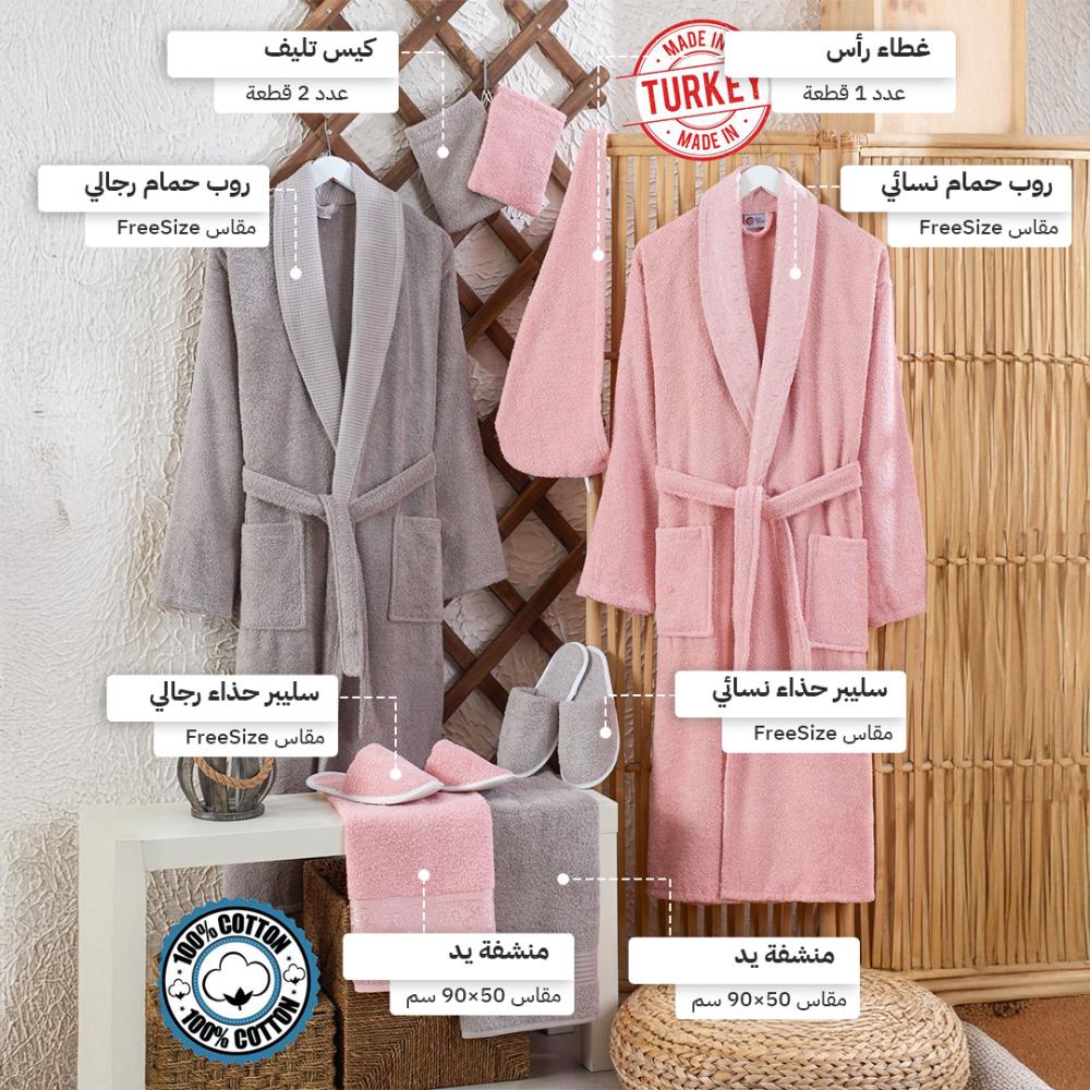 طقم روب حمام تركي فاخر – قطن 100% مع كامل الإكسسوارات