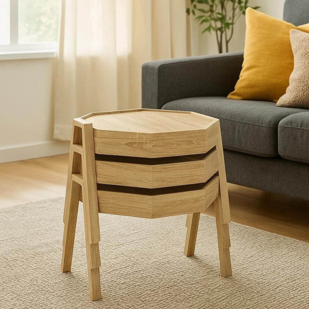 طقم طاولات جانبية خشبية S-02 – 3 قطع قابلة للتعشيق